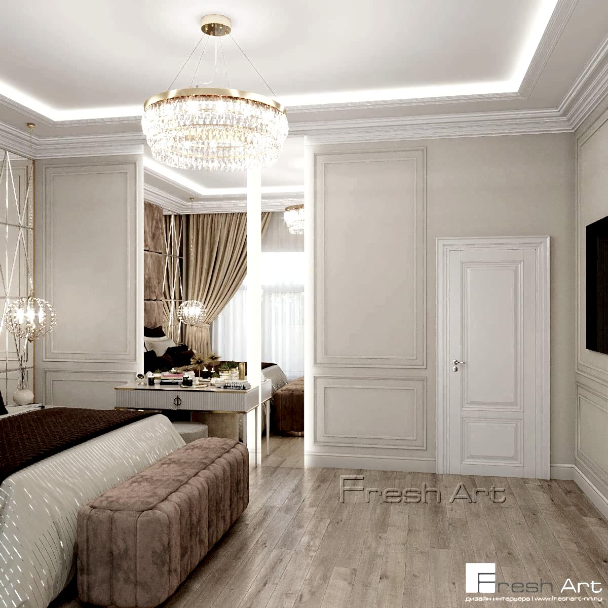 Стильный светлый интерьер коттеджа для наших постоянных заказчиков. Тот случай, когда пожелания минимальны и стопроцентное попадание во вкус клиента.