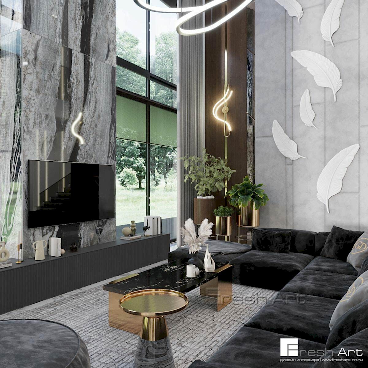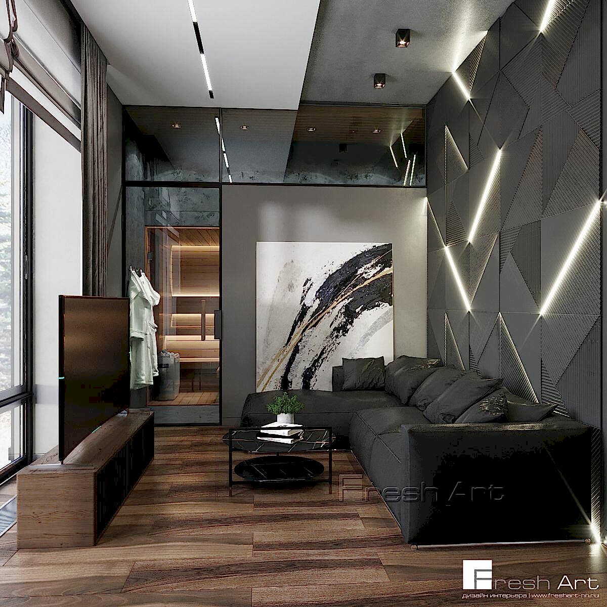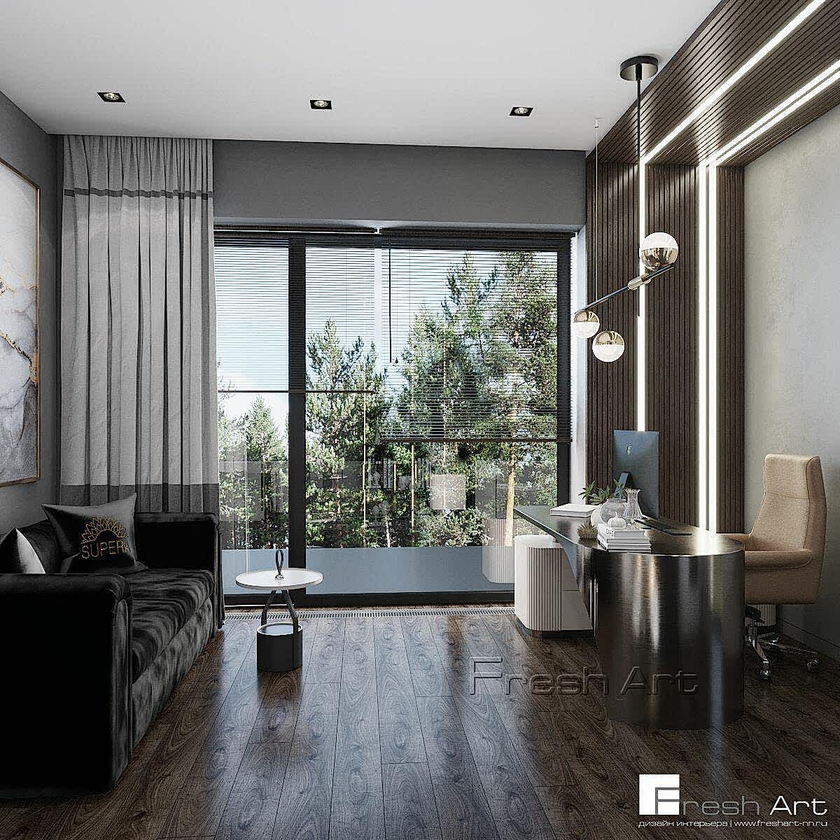 Стильный коттедж для молодой семейной пары. Комплексный дизайн проект позволил заказчику самостоятельно реализовать данный объект, так как помимо артикулов по отделочным материалам, в комплексном проекте прописывались артикулы абсолютно всей мебели, сантехники, бытовой техники, освещения и текстиля.